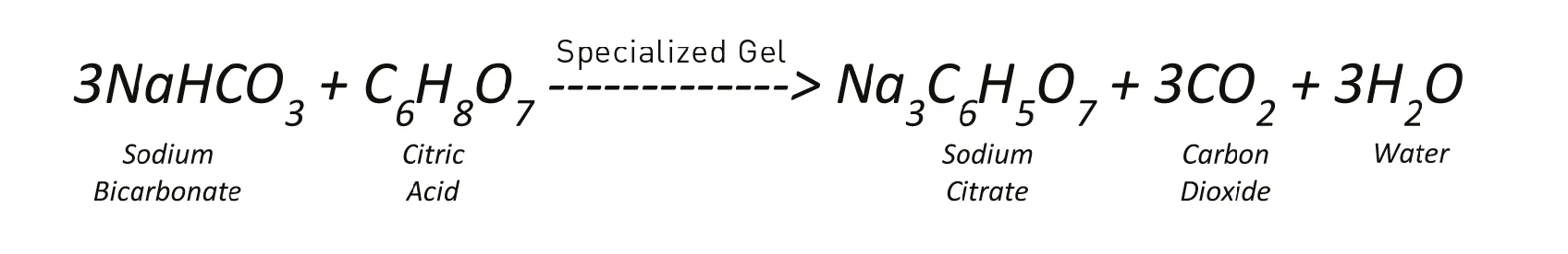 Figure 10: Chemical reaction of Capsugen upon contact with treatment gels.