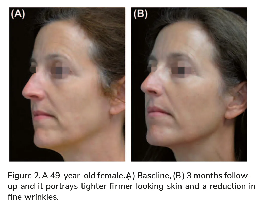 Skin laxity, photodamage, appearance of visible lines and wrinkles, and an overall decline in skin texture are typical characteristics of aging human skin (1). An increased demand for aesthetic treatments for enhancing appearance has led to the development and introduction of a myriad of technologies and treatment options. Skin resurfacing has been shown to be highly effective for improving a wide variety of aging skin symptoms, resulting in epidermal renewal and a better organized and newer dermal matrix. Numerous methods are available for skin resurfacing, including chemical peels, dermabrasion, lasers, and recently fractional RF (2).