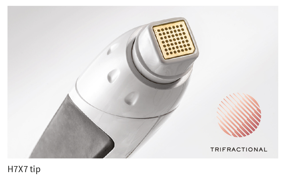 TRIFRACTIONAL TECHNOLOGY Radiofrequency (RF) skin resurfacing and pin-point ablation of the epidermal layer, inducing the natural wound healing process for skin remodeling and texture improvement. Fractional skin resurfacing removes pin-point layers of the skin and allows the renewal and formation of healthier and better-looking skin. TriFractional technology is intended for epidermal and upper dermal remodeling which encouracges production of Collagen and Elastin for a firmer a tighter skin. The smart tip design enables uniform distribution of the energy, allowing safe and effective treatment with minimal downtime and pain.