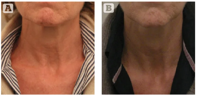 erbium glass laser (Lux 1540™, Palomar Medical Technologies)8. Six sessions were performed at 4 week intervals. The authors reported a significant improvement in skin dyschromia and superficial wrinkles of the neck, with less effect on deep horizontal wrinkles and no improvement of skin laxity.