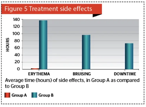 Satisfaction rates of subjects in group A was slightly higher compared to satisfaction rates in group B even though results were similar. This is probably due to the more painful procedure and longer downtime in Device B, which included hematomas, temporary edema, and erythema for several days.